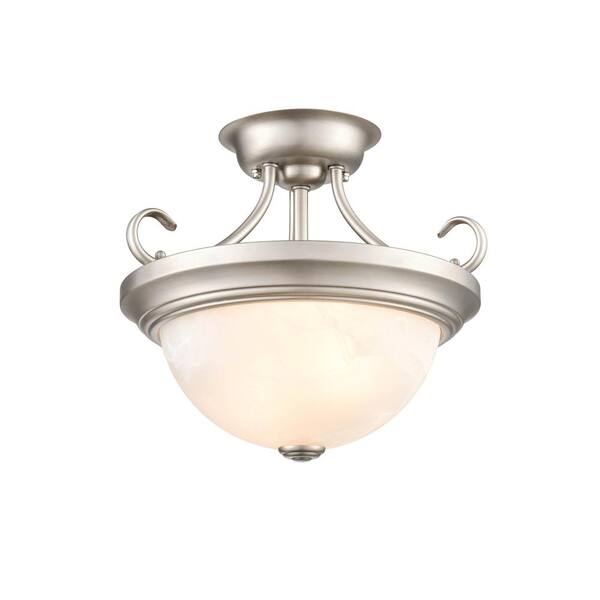 2-Light 13 in. Satin Nickel Hardwired Semi-Flush (1 - Pack)