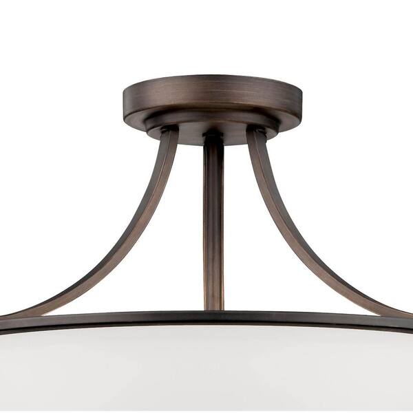 3-Light Rubbed Bronze Semi Flush Mount with Etched White Glass