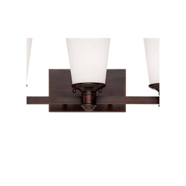 3-Light Rubbed Bronze Vanity Light with Etched White Glass