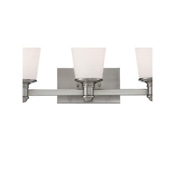 3-Light Satin Nickel Vanity Light and Etched White Glass
