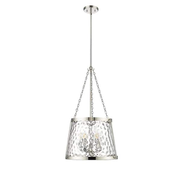 Adabella 200-Watt 5-Light Polished Nickel Pendant-Light Clear Hammered Shade