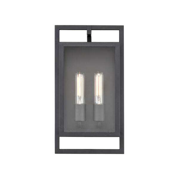 Agatha 15.6 in. 2-Light Textured Black Outdoor Hardwired Coach Wall Sconce with Clear Glass