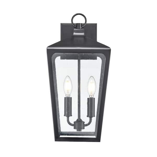 Brooks 2-Light 8.98 in. Wide Powder Coated Black Outdoor Wall Lantern with Clear Seeded Glass