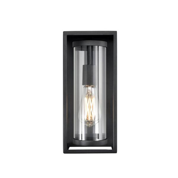 Caleb 12.5 in. 1-Light Textured Black Transitional Outdoor Hardwired Wall Sconce with Clear Glass