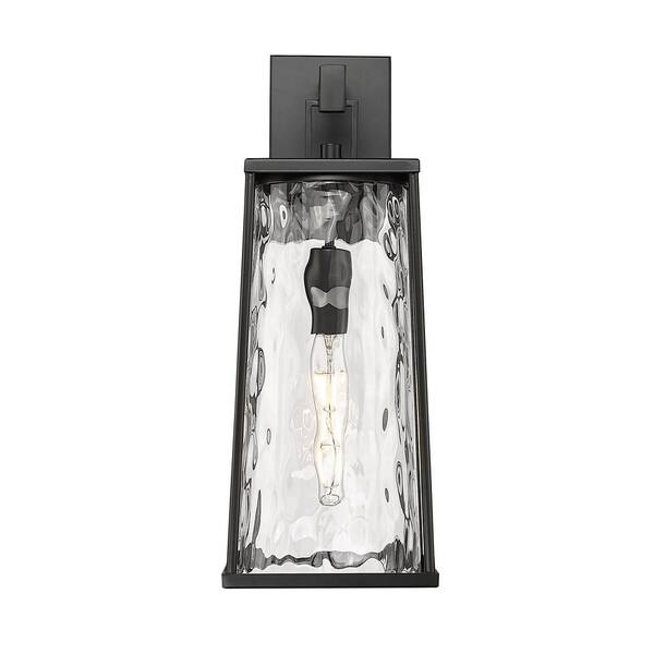 Dutton 19.75 in. 1-Light Powder Coated Black Transitional Outdoor Hardwired Wall Sconce Water Glass