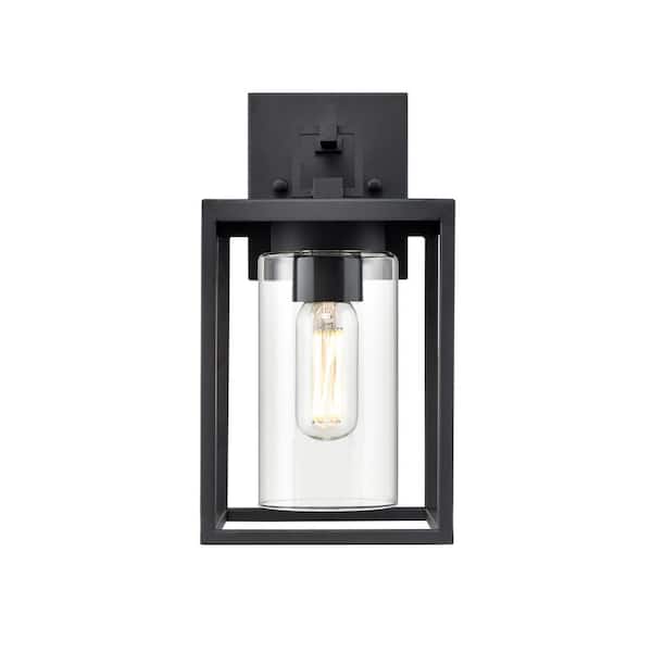 Ellway 1-Light 6.5 in. Wide Textured Black Outdoor Wall Lantern with Clear Glass