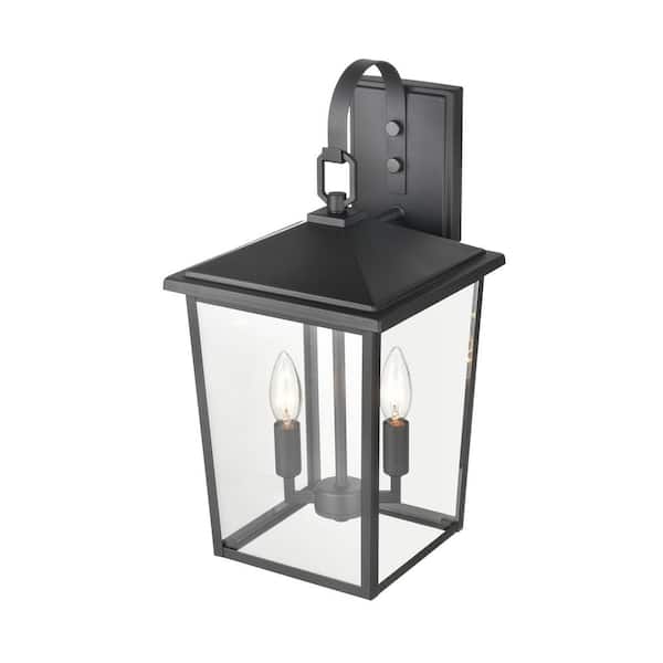 Fetterton 2-Light 9 in. Powder Coat Black Hardwired Outdoor Wall Lantern Sconce (1-Pack)