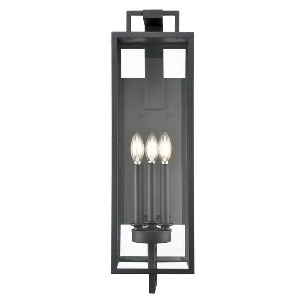 Lamont 28.5 in. 3-Light Textured Black Outdoor Hardwired Lantern Wall Sconce with Clear Glass