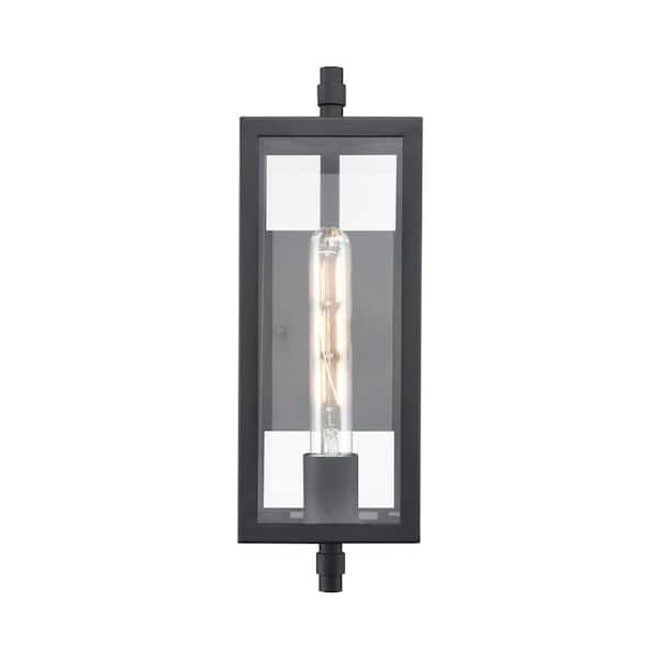Messi 14 in. 1-Light Textured Black Outdoor Hardwired Wall Lantern Sconce with Clear Glass
