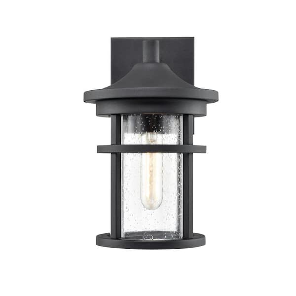 Namath 1-Light 7 in. Wide Textured Black Outdoor Wall Lantern with Clear Seeded Glass