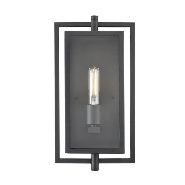 Rankin 15.7 in. 1-Light Textured Black Transitional Outdoor Hardwired Wall Sconce with Clear Glass