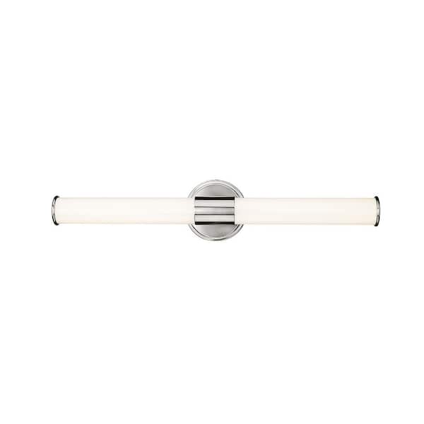 Trumann 24 in. 1-Light Brushed Nickel LED Vanity Light with White Shade