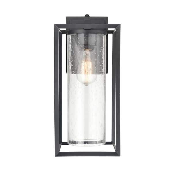 Wheatland 1-Light 9 in. Powder Coat Black Hardwired Outdoor Wall Lantern Sconce (1-Pack)