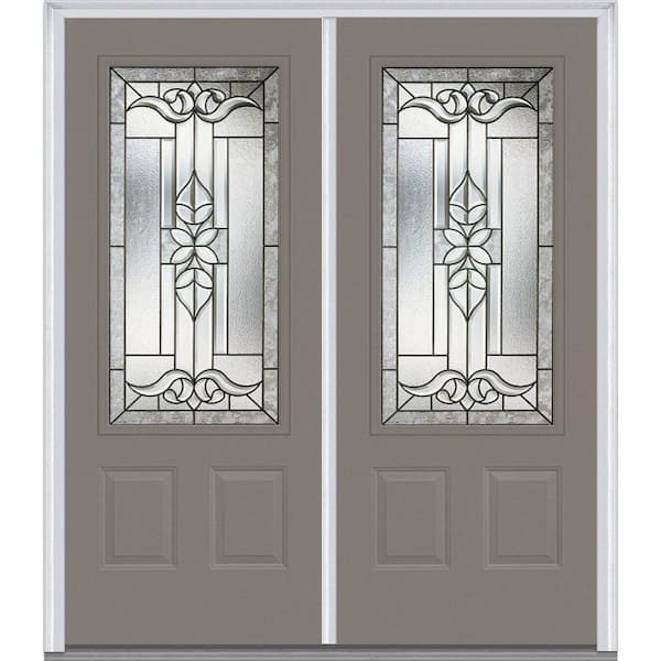 74 in. x 81.75 in. Cadence Decorative Glass 3/4 Lite Painted Majestic Steel Exterior Double Door