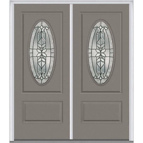 74 in. x 81.75 in. Cadence Decorative Glass 3/4 Oval Painted Fiberglass Smooth Exterior Double Door