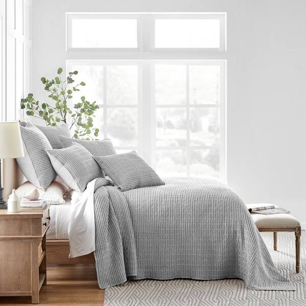 Mills Waffle 3-Piece Grey Solids Cotton Full/Queen Bedspread Quilt Set