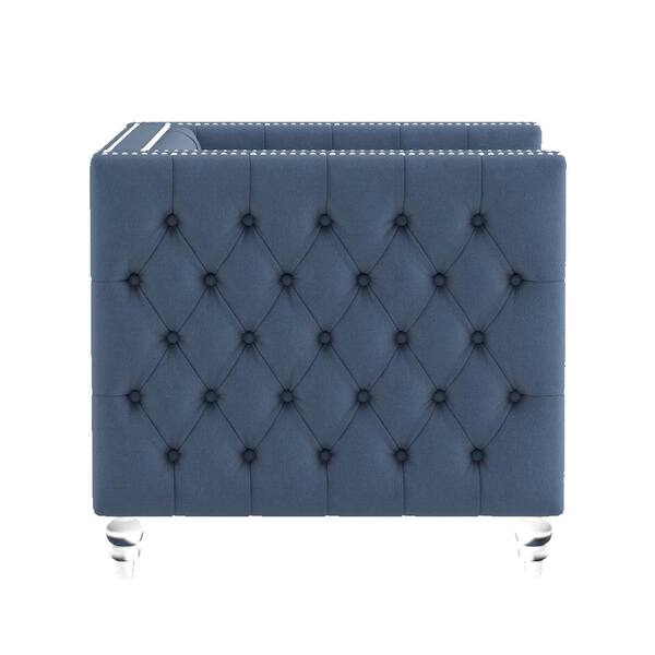 Milo 41 in. W Tuxedo Arm Velvet Straight Rectangle Chair in Blue (Set of 2)