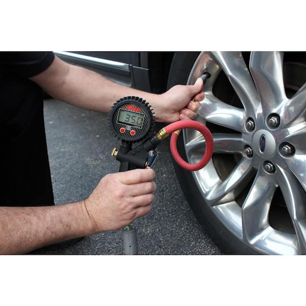 Pro Digital Pistol Grip Inflator Gauge with Straight Foot Dual Chuck and 15 in. Hose