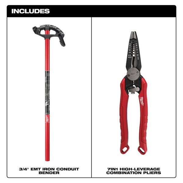 3/4 in. Iron Conduit Bender and Handle and 9 in. 7-in-1 Combination Wire Strippers Pliers