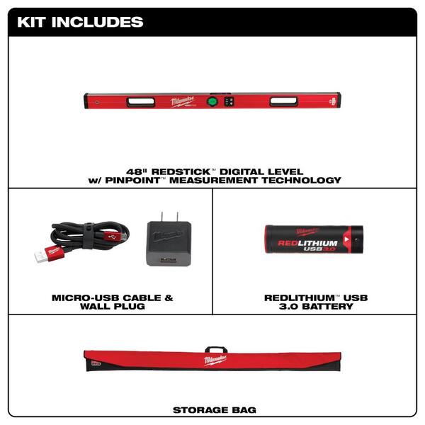 48 in. REDSTICK Digital Box Level with Pin-Point Measurement Technology with Portable Power Source Kit