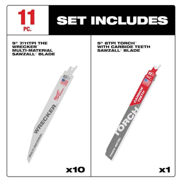 9 in. 7/11 TPI WRECKER Demo Multi-Material SAWZALL Reciprocating Saw Blades (10-Pk) & 9 in. 8 TPI TORCH Carbide Blade