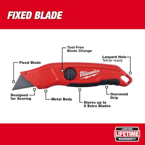 Fixed Blade Utility Knife with General Purpose Utility Blades with Dispenser