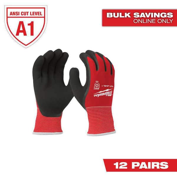 Large Red Latex Level 1 Cut Resistant Insulated Winter Dipped Work Gloves (12-Pack)