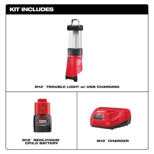 M12 12-Volt 400 Lumens Lithium-Ion Cordless LED Lantern/Trouble Light with 2. 0Ah and Charger Starter Kit