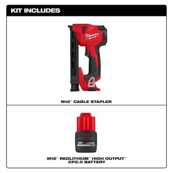 M12 12-Volt Lithium-Ion Cordless Cable Stapler w/CP High Output 2.5 Ah Battery Pack
