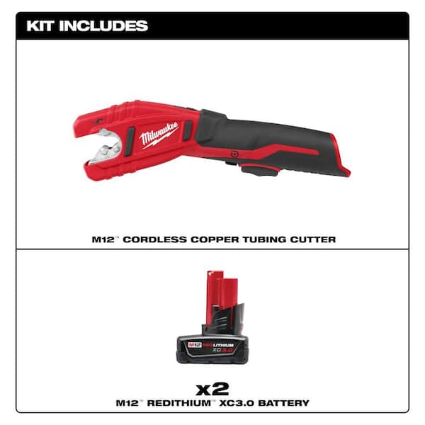 M12 12V Lithium-Ion Cordless Copper Tubing Cutter with 3.0 Ah Battery Pack (2-Pack)