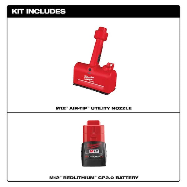 M12 AIR-TIP 1-1/4 in. - 2-1/2 in. Wet/Dry Shop Vacuum Utility Nozzle Attachment w/M12 2.0 Ah Compact Battery Pack