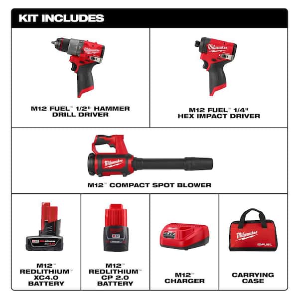 M12 FUEL 12-Volt Lithium-Ion Brushless Cordless Hammer Drill and Impact Driver Combo Kit with Compact Spot Blower