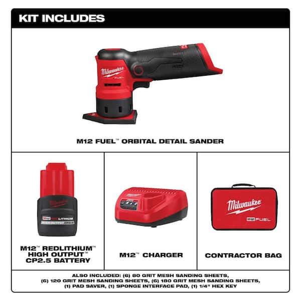 M12 FUEL 12-Volt Lithium-Ion Brushless Cordless Orbital Detail Sander Kit with (1) High Output 2.5 Ah Battery