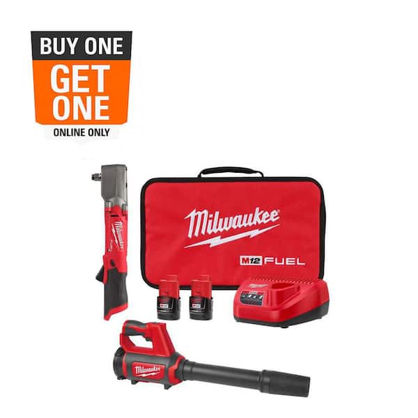 M12 FUEL 12V Lithium-Ion Brushless Cordless 1/2 in. Right Angle Impact Wrench Kit w Two 2.0 Ah Batteries & Spot Blower