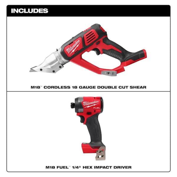 M18 18-Volt Lith-Ion Cordless 18-Gauge Double Cut Metal Shear w/ 1/4 in. Impact Driver