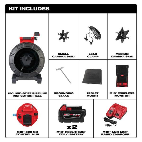 M18 18-Volt Lithium-Ion Cordless 120 ft. Pipeline Inspection System Image Reel Kit w/Inspection System Monitor (2-Tool)
