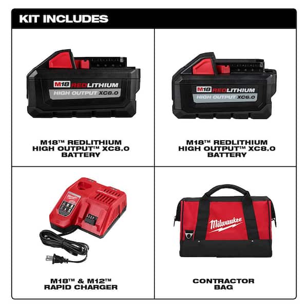 M18 18-Volt Lithium-Ion High Output Starter Kit with One 8.0 Ah and One 6.0 Ah Battery, Rapid Charger and Bag