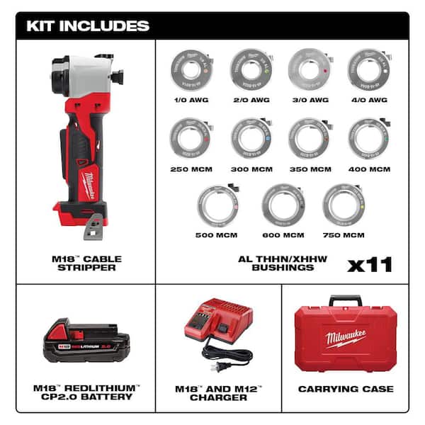 M18 18V Lithium-Ion Cordless Cable Stripper Kit for Al THHN/XHHW Wire Cutting