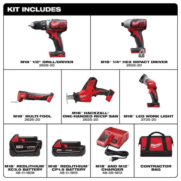 M18 18V Lithium-Ion Cordless Combo Kit (5-Tool) with (2) Batteries, Charger and Tool Bag