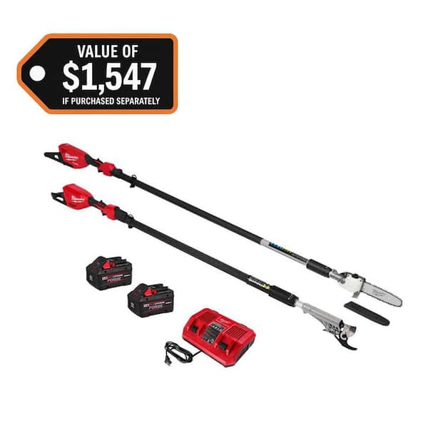 M18 FUEL 10 in. 18V Brushless Electric Cordless Telescoping Pole Saw w/ Pole Pruning Shears, (2) 8.0 Ah Battery, Charger