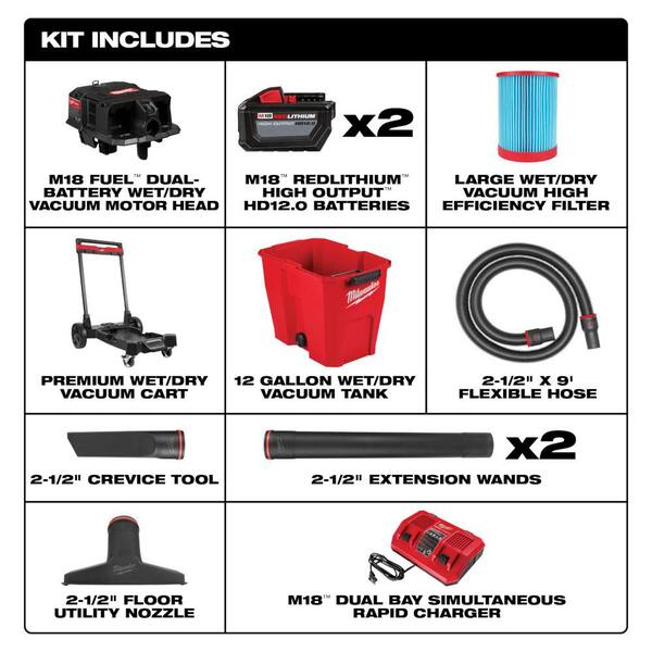 • 12 Gal Dual-Battery Wet/Dry Vac Outperforms 4.25 Peak HP Vacuums