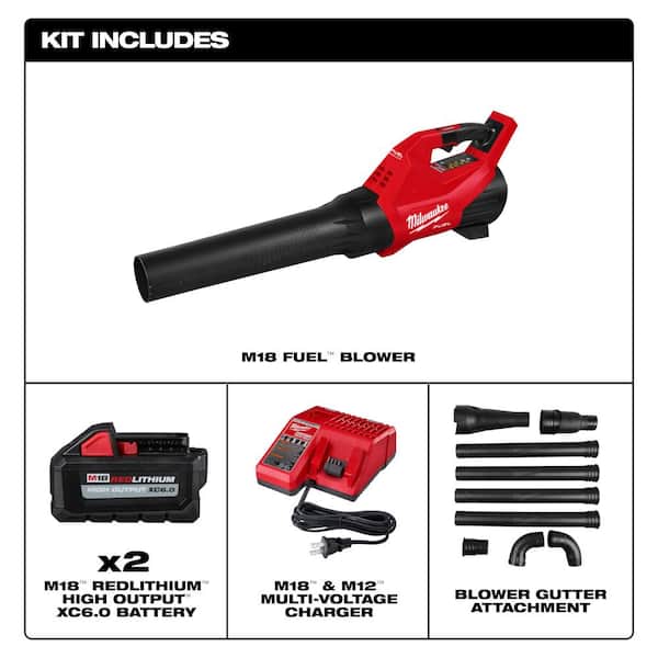 M18 FUEL 120 MPH 500 CFM 18V Brushless Cordless Handheld Blower w/Two 6.0 Ah Batteries, Gutter Attachment Charger