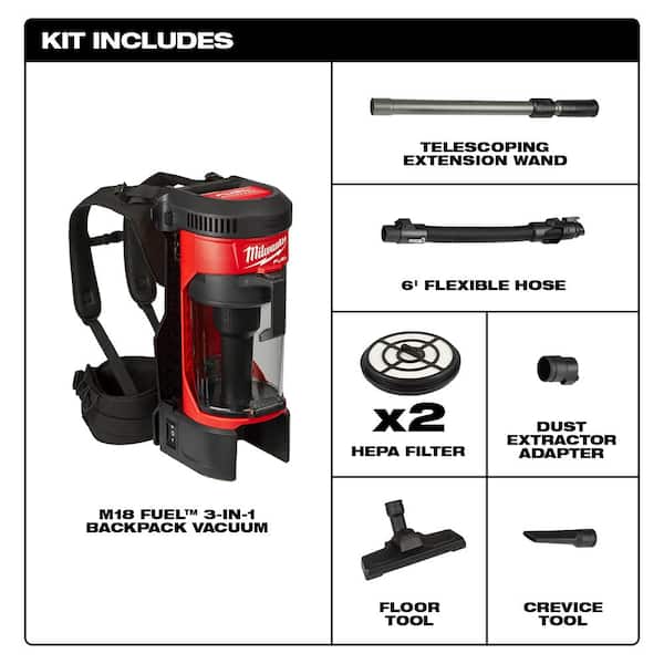 M18 FUEL 18-Volt Lithium-Ion Brushless 1 Gal. Cordless 3-in-1 Backpack Vacuum with Extra HEPA Filter