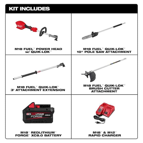 M18 FUEL 18V 10 in. Brushless Cordless Battery Powered QUIK-LOK Pole Saw 8.0 Ah FORGE Kit w/ Brush Cutter Attachment