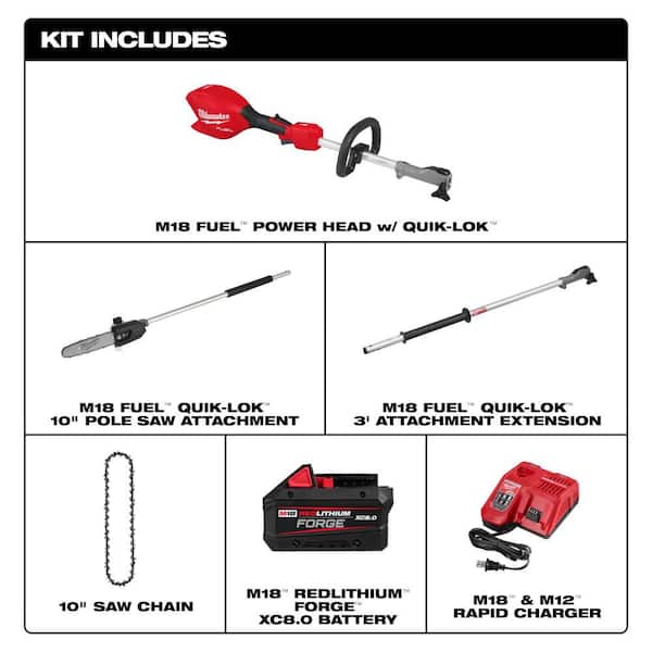 M18 FUEL 18V 10 in. Brushless Cordless Battery Powered QUIK-LOK Pole Saw 8.0 Ah FORGE Kit w/ Extra Chain