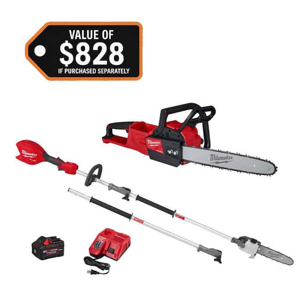 M18 FUEL 18V 16 in. Brushless Cordless Battery Powered Chainsaw w/ Pole Saw, 8.0 Ah Battery, Charger (2-Tool)