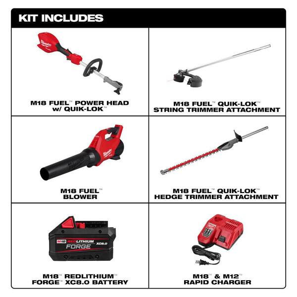 M18 FUEL 18V 16 in. Brushless Cordless QUIK-LOK String Trimmer/Blower 8.0 Ah FORGE Combo Kit w/ Hedge Trimmer Attachment