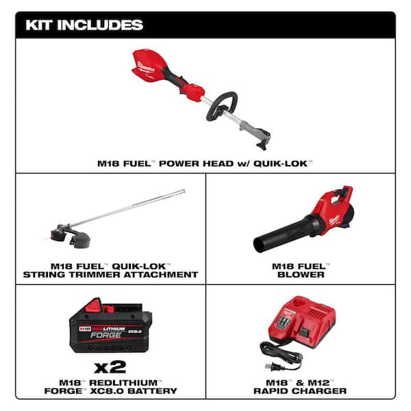 M18 FUEL 18V 16 in. Brushless Cordless QUIK-LOK String Trimmer/Blower Combo Kit w/ (2) 8.0 Ah FORGE Batteries, Charger