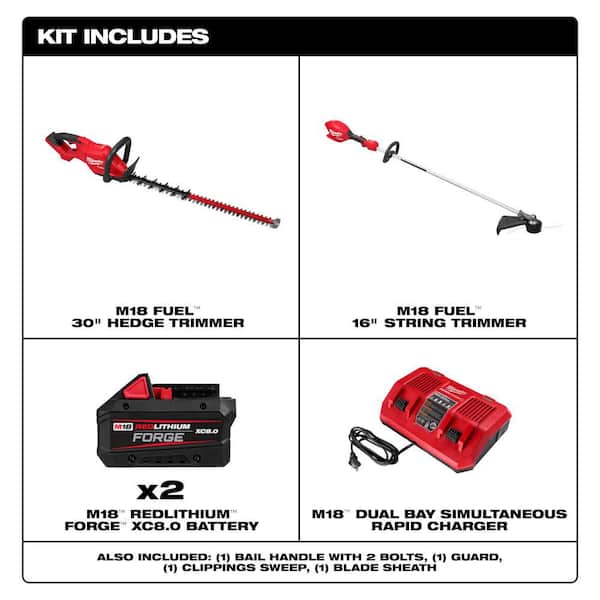 M18 FUEL 18V 16 in. Brushless Cordless Straight Shaft String Trimmer w/ Hedge Trimmer, (2) 8.0 Ah Battery, Charger