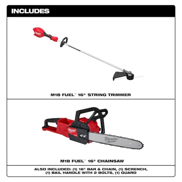 M18 FUEL 18V 16 in. Brushless Cordless Straight Shaft String Trimmer w/ M18 FUEL 16 in. Chainsaw